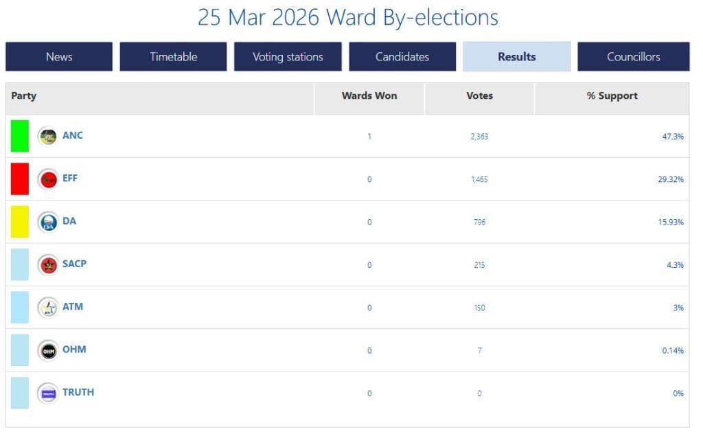 Well, no. To be fair, the ANC held the ward, albeit that the EFF and DA in second and third will be happy enough with their improved performances in this ANC stronghold.