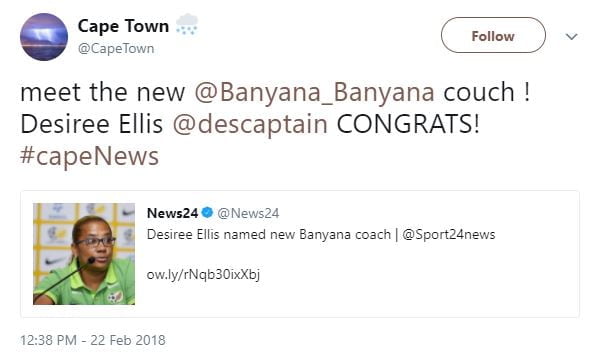 Local lady Desiree Ellis is now in charge of the South African women’s football team, as announced here: